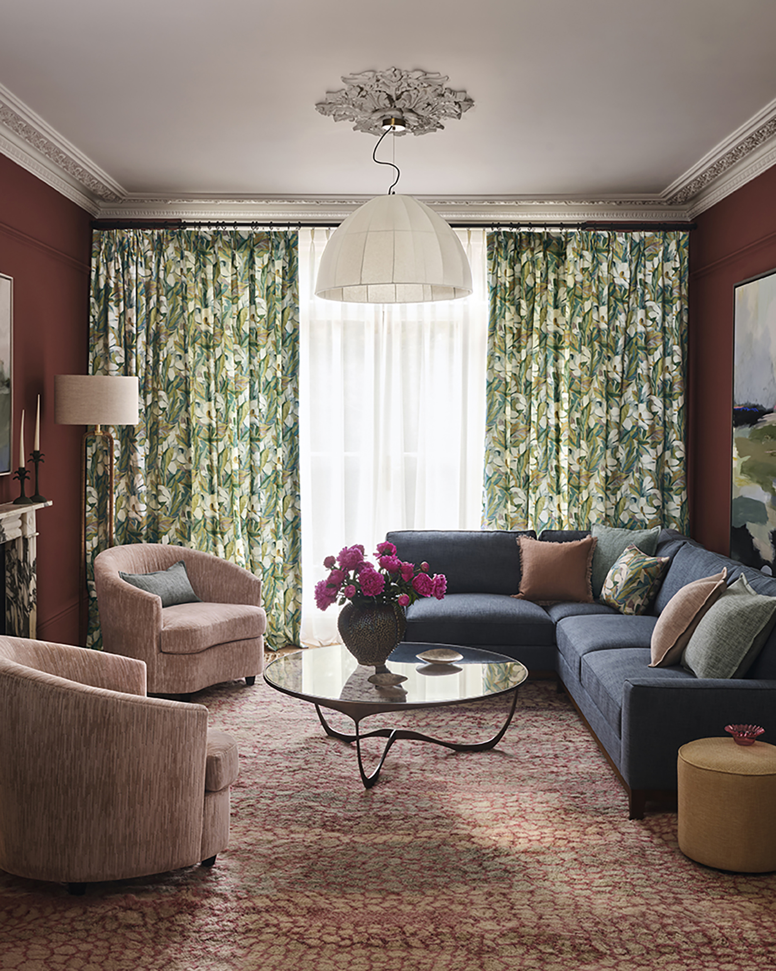 An amazing selection of highly stylish decorative fabrics. Art deco inspired weaves , bold florals and sumptuous plains. A complementary range of wallcoverings are also available.